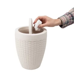 Round Premium Wicker Look Wastepaper Basket And Toilet Brush Set Ivory – Mind Reader
