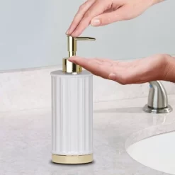 MDesign Toothpaste/Toothbrush Holder Stand Center, Rinse Cup/Cover