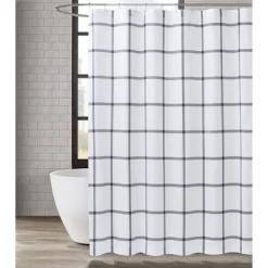 Printed Windowpane Shower Curtain White/Charcoal – Truly Soft
