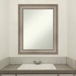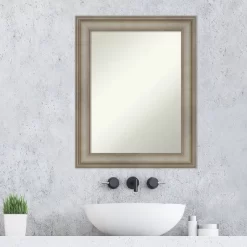 Give your bathroom the finishing touch with this 100% real wood Non-Beveled Wall Mirror framed with the Mezzanine Antique Silver Narrow frame. Individually made using traditional custom framing techniques, it has the quality you would expect from your local frame shop. It holds its value with premium finishing that can be appreciated up close. Because of our attention to detail and focus on artistry, architects, interior designers, and homeowners alike choose this mirror to create beautiful living spaces.
