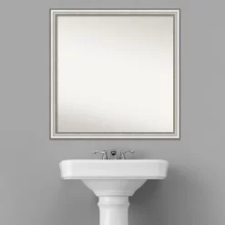 - MIRROR DETAILS: This mirror features premium glass for a clear, undistorted image and has a non-beveled surface to maximize the viewing area. The overall size of this bathroom mirror measures 28.5 x 28.5 inches, including the frame. Its reflective area measures 26 x 26 inches.