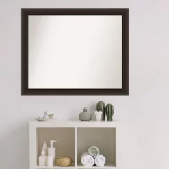 Give your bathroom the finishing touch with this 100% real wood Non-Beveled Wall Mirror framed with the Romano Espresso Narrow frame. Individually made using traditional custom framing techniques, it has the quality you would expect from your local frame shop. It holds its value with premium finishing that can be appreciated up close. Because of our attention to detail and focus on artistry, architects, interior designers, and homeowners alike choose this mirror to create beautiful living spaces.