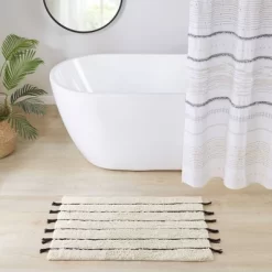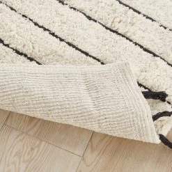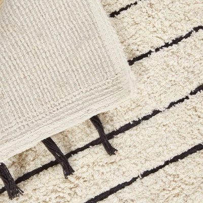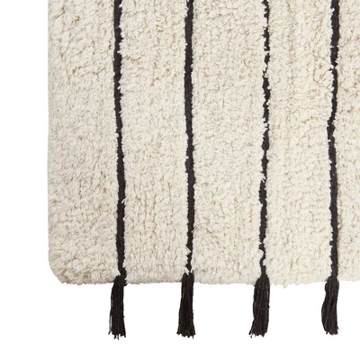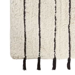 - Cotton woven yarn for textural stripe pattern with tassel detail ends for artisan touch