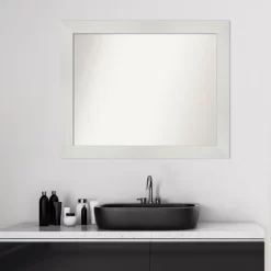 - MIRROR DETAILS: This mirror features premium glass for a clear, undistorted image and has a non-beveled surface to maximize the viewing area. The overall size of this bathroom mirror measures 32.5 x 26.5 inches, including the frame. Its reflective area measures 28 x 22 inches.