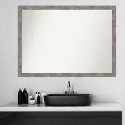 Give your bathroom the finishing touch with this 100% real wood Non-Beveled Wall Mirror framed with the Marred Pewter frame. Individually made using traditional custom framing techniques, it has the quality you would expect from your local frame shop. It holds its value with premium finishing that can be appreciated up close. Because of our attention to detail and focus on artistry, architects, interior designers, and homeowners alike choose this mirror to create beautiful living spaces.