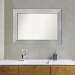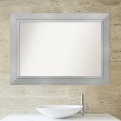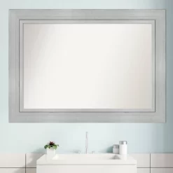 Give your bathroom the finishing touch with this 100% real wood Non-Beveled Wall Mirror framed with the Romano Silver frame. Individually made using traditional custom framing techniques, it has the quality you would expect from your local frame shop. It holds its value with premium finishing that can be appreciated up close. Because of our attention to detail and focus on artistry, architects, interior designers, and homeowners alike choose this mirror to create beautiful living spaces.