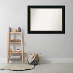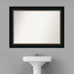 - MIRROR DETAILS: This mirror features premium glass for a clear, undistorted image and has a non-beveled surface to maximize the viewing area. The overall size of this bathroom mirror measures 44.5 x 33.5 inches, including the frame. Its reflective area measures 38 x 27 inches.