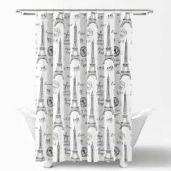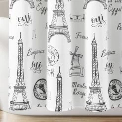 Bring the elegance and romance of Paris to your bathroom with this beautifully decorated Paris Bonjour Shower Curtain. Top to bottom you will find unique designs of the Eiffel Tower, Moulin Rouge, a café setting, and even a few familiar French sayings. Measuring 72 inches on each side, this curtain will fit in nearly any bathroom. This shower curtain is made of cotton for a chic and soft feel. For your convenience, this shower curtain is machine washable and tumble dry on low. Please refer to the product label for full care instructions. This shower curtain is OEKO-TEX® Standard 100 certified.