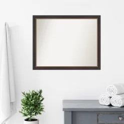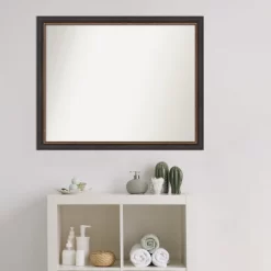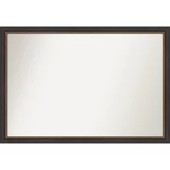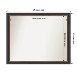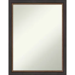Give your bathroom the finishing touch with this 100% real wood Non-Beveled bathroom mirror. The Ashton Black frame is a slightly mottled matte black frame with a lifted outer ridge that curves to an inner gold beaded edge.. The frame is 1.5 in. wide and stands 1.25 in. off the wall. It’s Individually made using traditional custom framing techniques, it has the quality you expect from your local frame shop. It holds its value with premium finishing that can be appreciated up close. Because of our attention to detail and focus on artistry, architects, interior designers, and homeowners alike choose this mirror to create beautiful living spaces.