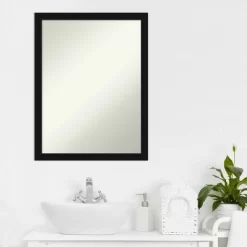 Give your bathroom the finishing touch with this Non-Beveled bathroom mirror. The Avon Black Narrow frame is a classic satin black frame with a flat profile and double wavy lines running on the inner edge. The frame is 1.25 in. wide and stands 0.75 in. off the wall. It’s Individually made using traditional custom framing techniques, it has the quality you expect from your local frame shop. It holds its value with premium finishing that can be appreciated up close. Because of our attention to detail and focus on artistry, architects, interior designers, and homeowners alike choose this mirror to create beautiful living spaces.