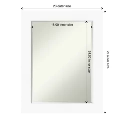 - MIRROR DETAILS: This mirror features premium glass for a clear, undistorted image and is finished with a petite 1/2-inch beveled edge which is more delicate than a traditional bevel. The overall size of this bathroom mirror measures 23.5 x 29.5 inches, including the frame. Its reflective area measures 18 x 24 inches.