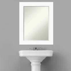 Give your bathroom the finishing touch with this Petite Bevel bathroom mirror. The Cabinet White frame is a wide frame that is the color of a white cabinet and has a flat surface, slightly recessed inner lip, and smooth, matte finish. The frame is 3 in. wide and stands 0.75 in. off the wall. It’s Individually made using traditional custom framing techniques, it has the quality you expect from your local frame shop. It holds its value with premium finishing that can be appreciated up close. Because of our attention to detail and focus on artistry, architects, interior designers, and homeowners alike choose this mirror to create beautiful living spaces.