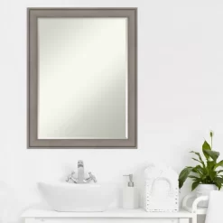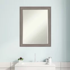 Give your bathroom the finishing touch with this 100% real wood Petite Bevel bathroom mirror. The Greywash frame is a frame with satiny, grey wash finish accentuated by subtle underlying woodgrain.. The frame is 2 in. wide and stands 1.25 in. off the wall. It’s Individually made using traditional custom framing techniques, it has the quality you expect from your local frame shop. It holds its value with premium finishing that can be appreciated up close. Because of our attention to detail and focus on artistry, architects, interior designers, and homeowners alike choose this mirror to create beautiful living spaces.