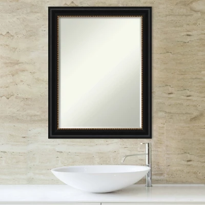 Give your bathroom the finishing touch with this Petite Bevel bathroom mirror. The Manhattan Black frame is a black scooped frame with antique gold beaded inner edge. The frame is 2.25 in. wide and stands 1 in. off the wall. It’s Individually made using traditional custom framing techniques, it has the quality you expect from your local frame shop. It holds its value with premium finishing that can be appreciated up close. Because of our attention to detail and focus on artistry, architects, interior designers, and homeowners alike choose this mirror to create beautiful living spaces.