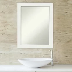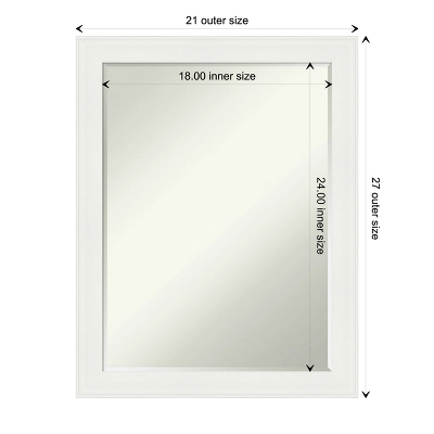 - MIRROR DETAILS: This mirror features premium glass for a clear, undistorted image and is finished with a petite 1/2-inch beveled edge which is more delicate than a traditional bevel. The overall size of this bathroom mirror measures 21.5 x 27.5 inches, including the frame. Its reflective area measures 18 x 24 inches.