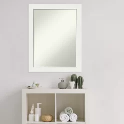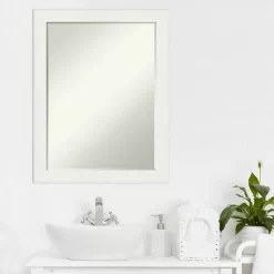 Give your bathroom the finishing touch with this Petite Bevel bathroom mirror. The Vanity White Narrow frame is a contemporary white frame with a slightly sloping face to the inner edge and a smooth matte finish. The frame is 2 in. wide and stands 1.25 in. off the wall. It’s Individually made using traditional custom framing techniques, it has the quality you expect from your local frame shop. It holds its value with premium finishing that can be appreciated up close. Because of our attention to detail and focus on artistry, architects, interior designers, and homeowners alike choose this mirror to create beautiful living spaces.