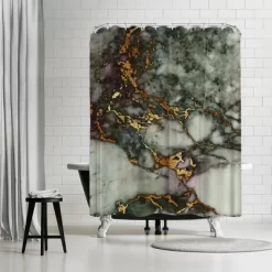 - Ready-To-Hang – featuring a cotton back loop with 12 holes for easy installation. Fits Most Standard-Sized Showers – Sized 71″ x 74. The shower curtain does not include a rod or liner. The use of a liner is recommended.