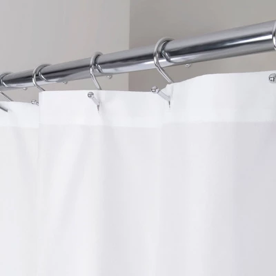 - Reinforced header with 12 buttonhole openings fits standard shower hooks (not included)