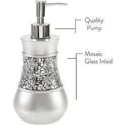 Upgrade the elegance of your bathroomwith the Creative Scents Brushed Nickel Bathroom Set. Made of high-quality hand made mosaic glass, this accessory set will complete the look of your bathroom, givingit an coordinated touch.The Brushed Nickelset makes a great housewarming gift, makingit useful and a beautiful piece to have around!