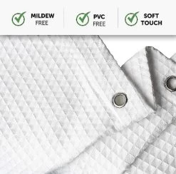- Water Resistant: A Water-Resistant Waffle Weave Design Keeps Your Fabric Shower Curtain White Clean and Dry.