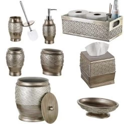 The Exquisite Bath Accessories You’ve Been Looking Forelegant Touch reel In Those Compliments With The Most Eye-catching Bath Décor Pieces! Designed For Anyone With Discerning Taste And A Love For Timeless Décor, The Dublin Collection Accentuates Your Space With Its Rich Brushed Silver Hue, metallic-looking Sheen, A Striking Mix Of Sharp & Smooth Lines, And A Textured Diamond Shaped Pattern That Crowns The One-of-a-kind Look.Whether Your Bathroom Has A Contemporary, Rustic, Or Industrial Décor, These Pieces Blend Right In With Seamless Elegance. epitome Of Qualityno More Dealing With Decorative Bath Pieces That Quickly Lose Their Luster, Easily Chip, Or Rust In No Time. We’ve Used Premium-grade Materials To Create Bathroom Accessories That Are Impressively Heavy, Require Next To No Maintenance,and Give Off An Expensive Look And Feel. These Accent Pieces Make An Affordable Way To Give Any Bath A Fabulous Facelift So Whether You’re Looking For The Perfect Gift To Crown That Birthday, Anniversary, Housewarming, Or Holiday, These Accessories Are Guaranteed Tobe A Smashing Hit.here’s What Makes These Bathroom Accessories A Great Buy:-Striking Mix Of Color And Design Fits Any Décor.-Made With Great Attention To Detail For A Beautiful Finished Look.-Carefully Sized To Save On Space While Still Bringing On Functionality.-Withstand The Humid Condition Of Any Bathroom Without Ever Rusting.upgrade Your Bathroom In An Instant With Bath Accessories That Blend Striking Aesthetics With Superior Functionality And Outstanding Quality. Click ‘add To Cart’ Now!
