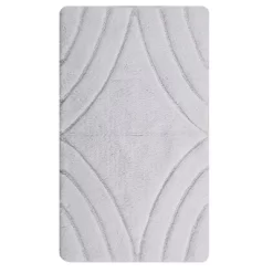 Designed to sit alongside your tub, shower, or sink and provide a comfortable, warm, dry spot for you to stand, the Knightsbridge rug will coordinate with infinite decorating styles. This beautiful diamond pattern design bath rug with a non-skid back is made of 100% cotton and is super soft and absorbent. It’s the ultimate in comfort and the wide array of colors will enhance any bathroom decor. Available colors: White, Ivory, Silver, Natural, Sage, Light Blue, Stone, and Aqua. Measures: 21in x 34in