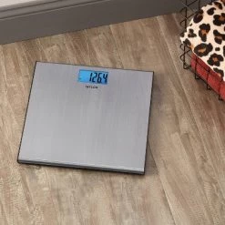 The 7403 scale utilizes instant on technology, simply step on the scale to get the weight reading. The large ultra thin platform can provide comfort for most foot sizes with four sensors to provide accuracy up to 440 lbs in 0.2 lb increments (180 kg x 0.1 kg). The large 3.0″ x 1.6″ read out is easy to see from a distance. Features instant on, auto off and low battery indicator. Auto off helps to preserve battery life (low battery indicator provides peace of mind). 4 AAA batteries included. Backed with a 5 year limited warranty.