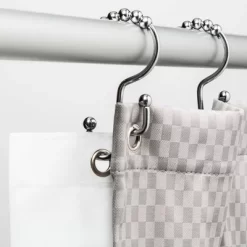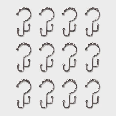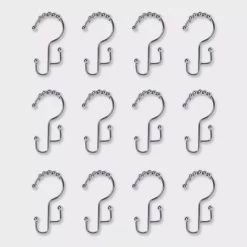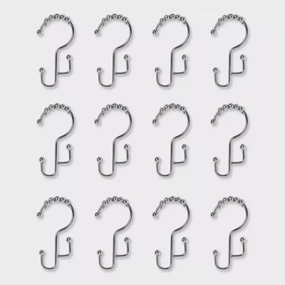 - Set of 12 rust-resistant double shower curtain hooks with a sleek, functional design