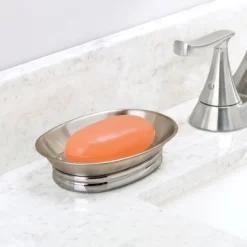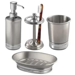 Make a style statement on your bathroom vanity or counter top with this Bathroom Accessory Set from mDesign. The soap dispenser holds up to 8 ounces of liquid soap solution. The toothbrush holder has four sections to keep toothbrushes separated and organized. The soap dish has ridges to help bar soap dry quickly in between uses. Use the tumbler for drinking, rinsing, or makeup brush storage!