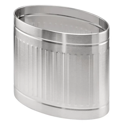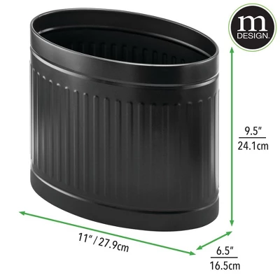 The mDesign trash can wastebaskets are sized perfectly for smaller spaces, but still have plenty of room for your recyclables and garbage. Made of high quality durable materials, this can will hold up to everyday use. It can be used for trash, recycling, or storing household items. The slim oval design combined with the modern two-tone finishes makes itthe perfect complement to any home.