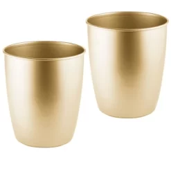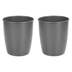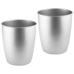 The mDesign trash can wastebaskets are sized perfectly for smaller spaces, but still have plenty of room for your recyclables and garbage. Made of durable materials, these cans will hold up to everyday use. They can be used for trash, recycling, or storing household items. The beautiful round design combined with the modern metal finishes make them the perfect complement to any home.