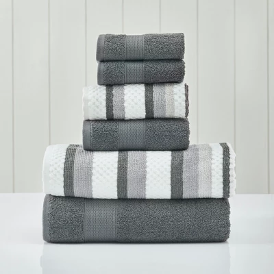 This set is the perfect complement to any bathroom whether you use it to pamper yourself or reserve it for special guests. These towels will feel cozy and comfortable against your skin every time you use them. Half of the set features a solid color design, while the other half is a yarn dyed jacquard pattern that adds texture and beauty to this gorgeous set. Additionally the towels get softer with washing and drying.