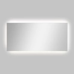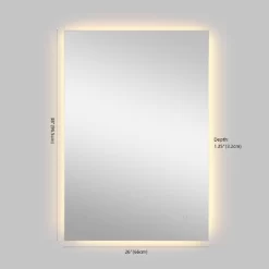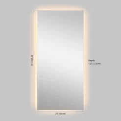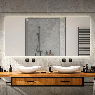 - Modern frameless mirror hangs horizontally or vertically; the backlight adds ambiance and a soft nightlight