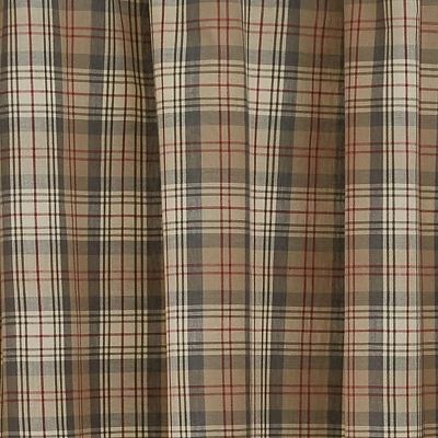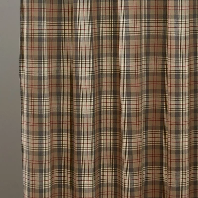 Neutral earthtone colors with a hint of deep red combine to make the handsome plaid in the Gentry Shower Curtain. Add this shower curtain to your bathroom decor for a lovely woven plaid that will be perfect throughout the year. The shower curtain features twelve sewn in holes for hanging and ample width and length, so when used on a standard bath, the curtain falls into attractive folds that adds warmth and comfort to the setting.