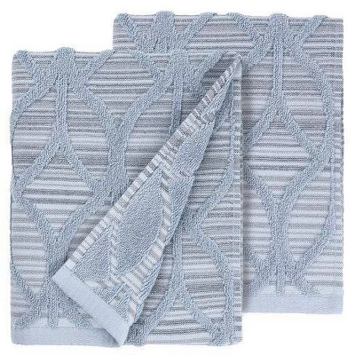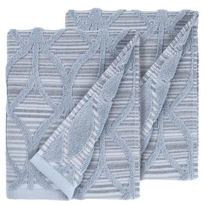 Create a mood of elegance and sophistication in your bath with the Alev Jacquard Towel Collection. The multi-hued stria stripe background is highlighted by high loop pile in a modern lattice jacquard pattern. Each luxurious towel is made from 100% Turkish Cotton to satisfy your senses with soft touch, substantial terry pile, and superior absorbency. This collection is available in two lovely colors: Blue/Multi & Gray/Multi. The Alev Jacquard Towel Collection brings a fresh spirit and richness to your home decor and makes a great gift!