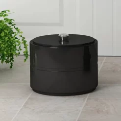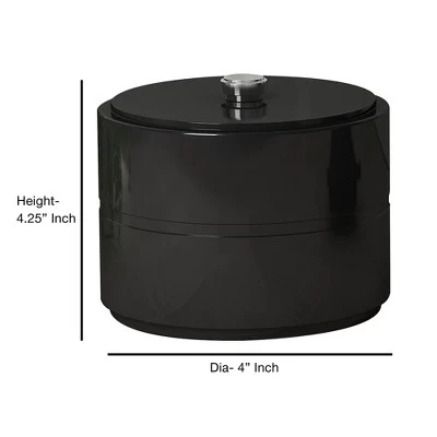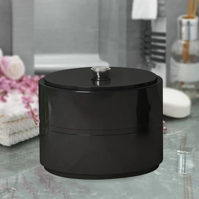 This storage jar is made of resin, Its attractive and removable black lid combines good looks and functionalityThis makes a perfect wedding, housewarming/new home giftUse these jars for everything from cotton balls and swabs to cosmetic wedges, makeup swabs, bath salts, bath bombs, small soaps, beauty supplies and more.