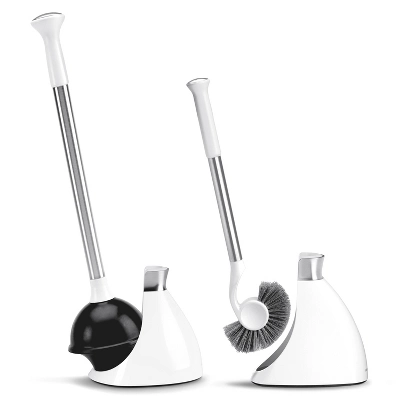 Now available as a bundle, these toilet plunger and toilet brush have both been designed with magnetic collars that secure them to their covers so you can carry them without dripping. The plunger’s dome-shaped cover discreetly hides it, while the large opening at the back makes it easy to detach. Its flange is specially designed with a narrow profile to work more efficiently with modern toilets. The toilet brush has a specially designed crescent shape to reach hard-to-clean areas around the rim. The slim, dome-shaped cover conveniently stores the toilet brush when not in use, keeping it hygienic and discreetly hidden.