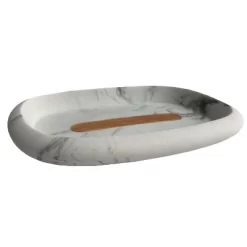 Bring some Classic charm to your bathroom with the Marble Plaza bathroom accessory set. Featuring a Marble design with a Wood Tone accent stripe, this handcrafted resin collection is luxurious, stylish, and helps keep your bathroom décor clean, fresh, and organized. The set includes: a tumbler, lotion/soap dispenser, toothbrush holder and soap dish. The Marble Plaza accessory collection features a Black and White Marble design and brown wood tone stripe. Each piece is hand crafted in a durable resin. Easy to wipe clean and made to last a lifetime. This ultra-luxurious collection will surely add contemporary charm to your bathroom.