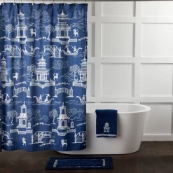 Chinoiserie is part of the Vern Yip by SKL Home Collection. This collaboration with famed interior designer, Vern Yip, and SKL Home, brings a modern twist to traditional patterns, mixing fashion and function. Inspired from traditional Asian motifs and culture, Chinoiserie offers a modern approach to this ornate style of design. This plush terry bath towel, featured in rich navy, has detailed white embroidery and decorative grosgrain ribbon trim. Shop the coordinating Chinoiserie collection to complete the look.