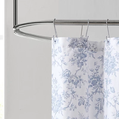 - Laura Ashley Walled Garden Shower Curtain Highlights A Refreshing Cool Blue Floral Toile Pattern On Crisp White