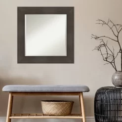 22″ X 28″ Non-Beveled Corded Bathroom Wall Mirror Black – Amanti Art